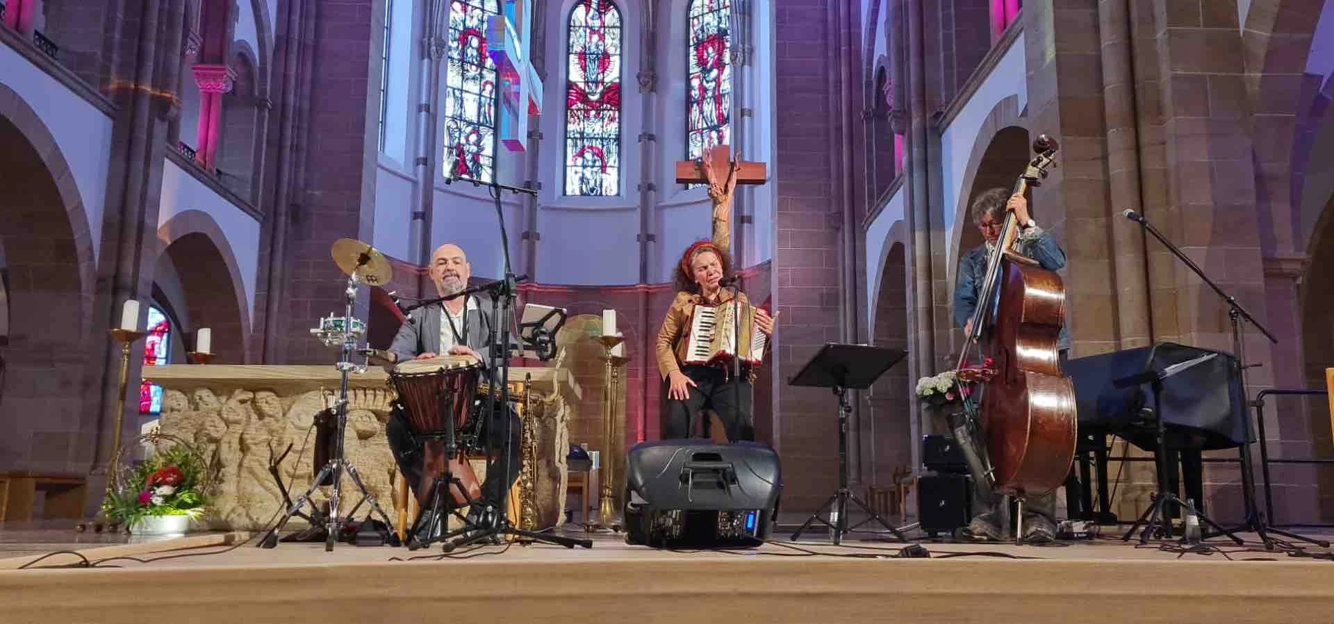 Wenn Alegría Mannhardt (Gesang, Akkordeon), Uli Lehmann (Kontrabass) und ihr Saxophonist/Perkussionist auf die Bühne treten, entsteht etwas, das man nicht in Noten fassen kann: Musik, die aus Stille geboren wird und zwischen den Tönen lebt. Jeder Klang darf atmen, jede Pause erzählt eine eigene Geschichte. Das Münchner Chanson-Trio steht für handgemachte Musik, die berührt – akustisch, atmosphärisch und voller Seele.
